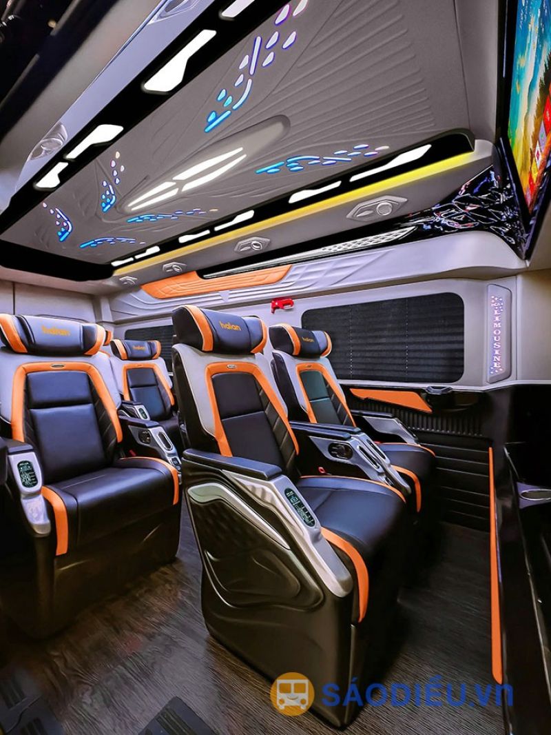 Xe Hà Lan sử dụng đồng bộ dòng xe Limousine VIP 10 chỗ đời mới. Khác với dòng xe Limousine 11 chỗ (thông thường hàng đầu có 02 ghế), hàng đầu xe Limousine Hà Lan chỉ thiết kế 1 ghế nên cả 10 ghế của xe đều rất rộng rãi, thoải mái. Các ghế được bọc da cao cấp, nội thất ốp gỗ tinh tế với rèm kéo che nắng.