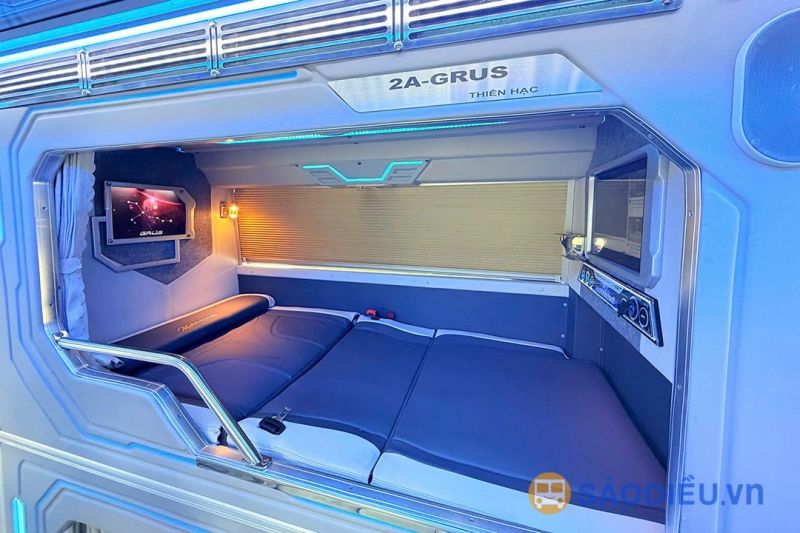 Xe giường Cabin VIP Huế - Hà Nội là loại xe giường phòng 22/24 Cabin cao cấp. Khoang giường của xe Cabin rất rộng và có thể đặt phẳng hoàn toàn, giảm thiểu tình trạng mỏi lưng, cổ khi nằm lâu. Ngoài những tiện nghi thông thường như Điều hòa, Wifi, Chăn đắp, Nước uống, mỗi Cabin còn được trang bị đèn đọc sách, cổng sạc USB, Tivi LCD, tai nghe với hàng trăm chương trình phim và ca nhạc để khách hàng thư giãn, giải trí.