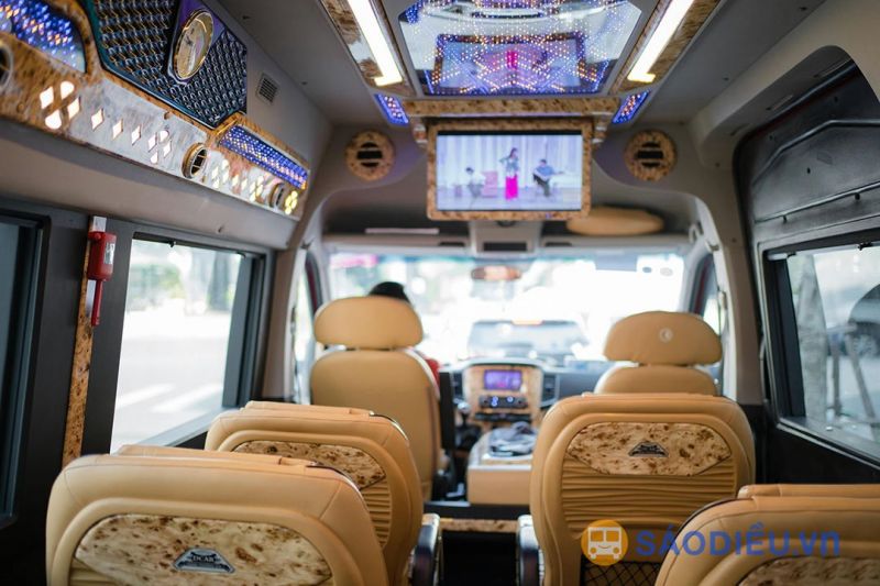 Trên xe trang bị đầy đủ tiện nghi hiện đại như: Wifi, cổng sạc USB ngay gần tại vị trí tất cả các ghế, màn hình LCD, chăn đắp, khăn lạnh, nước uống và đồ ăn nhẹ miễn phí.