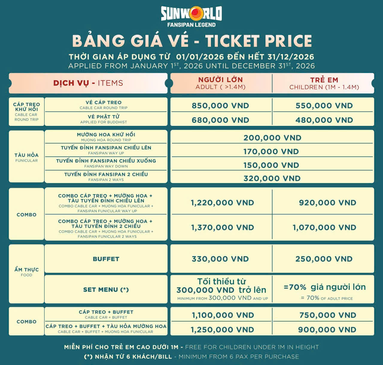 Vé cáp treo Fansipan khứ hồi giữa Ga Hoàng Liên và Ga Fansipan.
