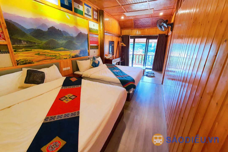 Nghỉ 01 đêm/02 đêm tại phòng tiêu chuẩn (01 giường đôi) homestay theo tiêu chuẩn địa phương tùy chọn địa điểm tại: Thành phố Hà Giang, Thị Trấn Đồng Văn, Làng Lô Lô Chải, Thị Trấn Mèo Vạc, Làng Pả Vi Mèo Vạc. Ngủ 02 khách/phòng, ngủ 04 khách/phòng có phụ thu.