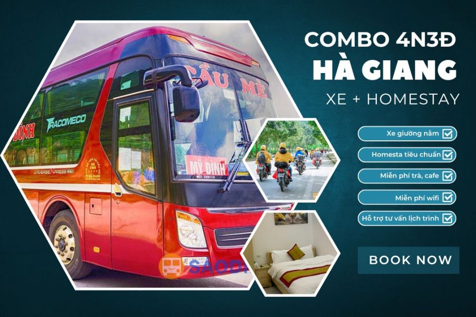 Xe khách sẽ đưa bạn từ Hà Nội đến Thành phố Hà Giang. Sau đó, từ Thành phố Hà Giang, bạn thong dong trên khắp những cung đường Hà Giang miền sơn cước hữu tình để cảm nhận vẻ đẹp của các địa danh vừa hùng vĩ nên thơ vừa mộc mạc, yên bình của miền đất địa đầu Tổ Quốc như: Con Đường Hạnh Phúc, Dốc Bắc Sum, Cổng trời Quản Bạ, Dốc Thẩm Mã, Cột Cờ Lũng Cú, Đèo Mã Pì Lèng, Sông Nho Quế, Mèo Vạc, Du Già...