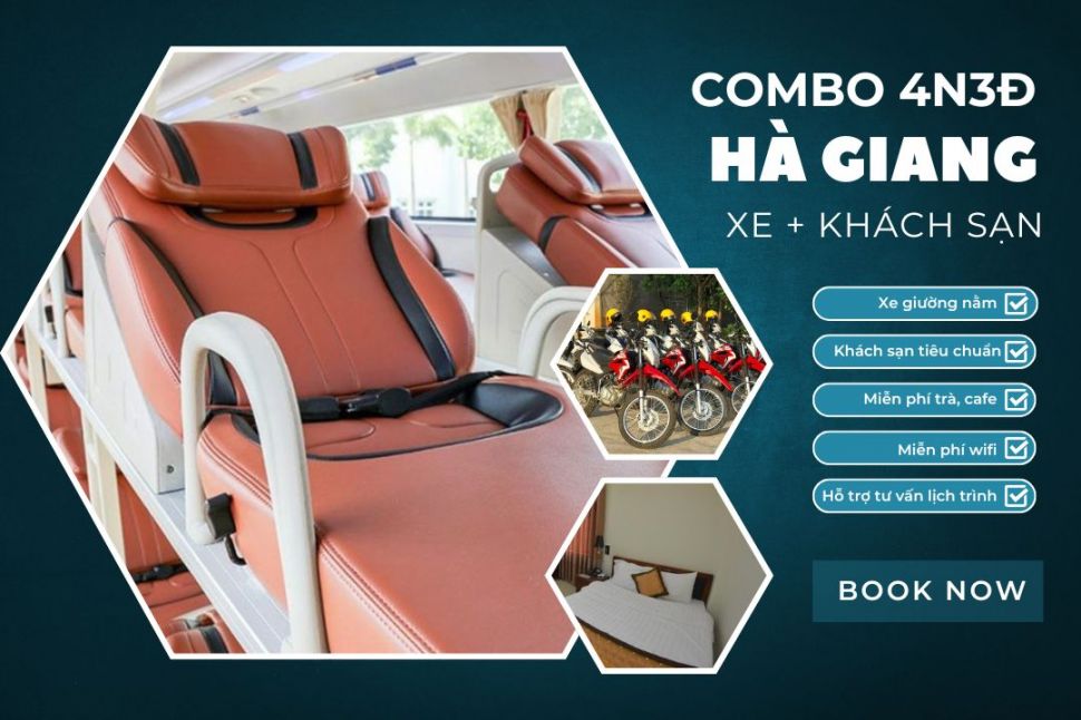 Xe khách sẽ đưa bạn từ Hà Nội đến Tp Hà Giang. Từ TP Hà Giang, bạn chủ động lựa chọn phương tiện phù hợp như xe máy, xe ô tô để tự do khám phá từng ngõ ngách, con đường, núi đèo, bản làng Hà Giang với những địa danh hùng vỹ nơi biên cương tổ quốc như: Con Đường Hạnh Phúc, Núi Đôi Cô Tiên, Cổng Trời Quản Bạ, Dốc Thẩm Mã, Cột Cờ Lũng Cú, Đèo Mã Pì Lèng, Mèo Vạc, Du Già,...