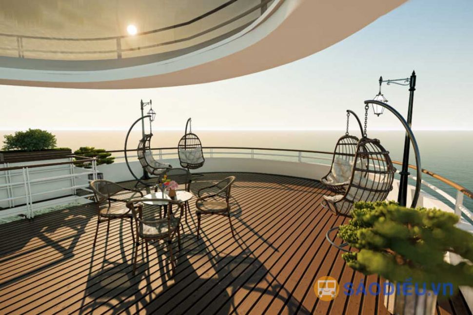 Thư giãn trên boong tàu, ngắm hoàng hôn lãng mạn hoặc thưởng thức cocktail tại quầy bar.