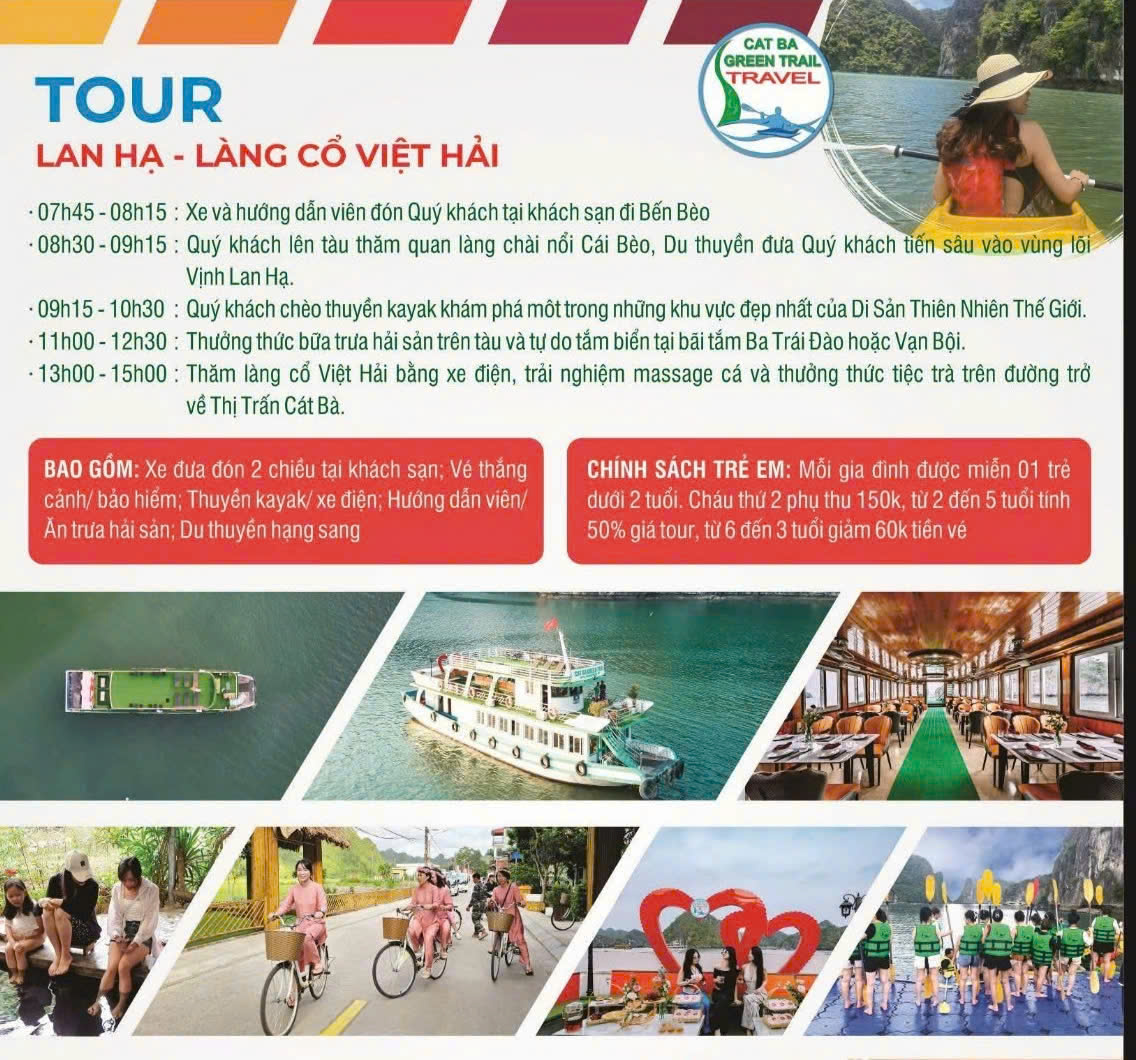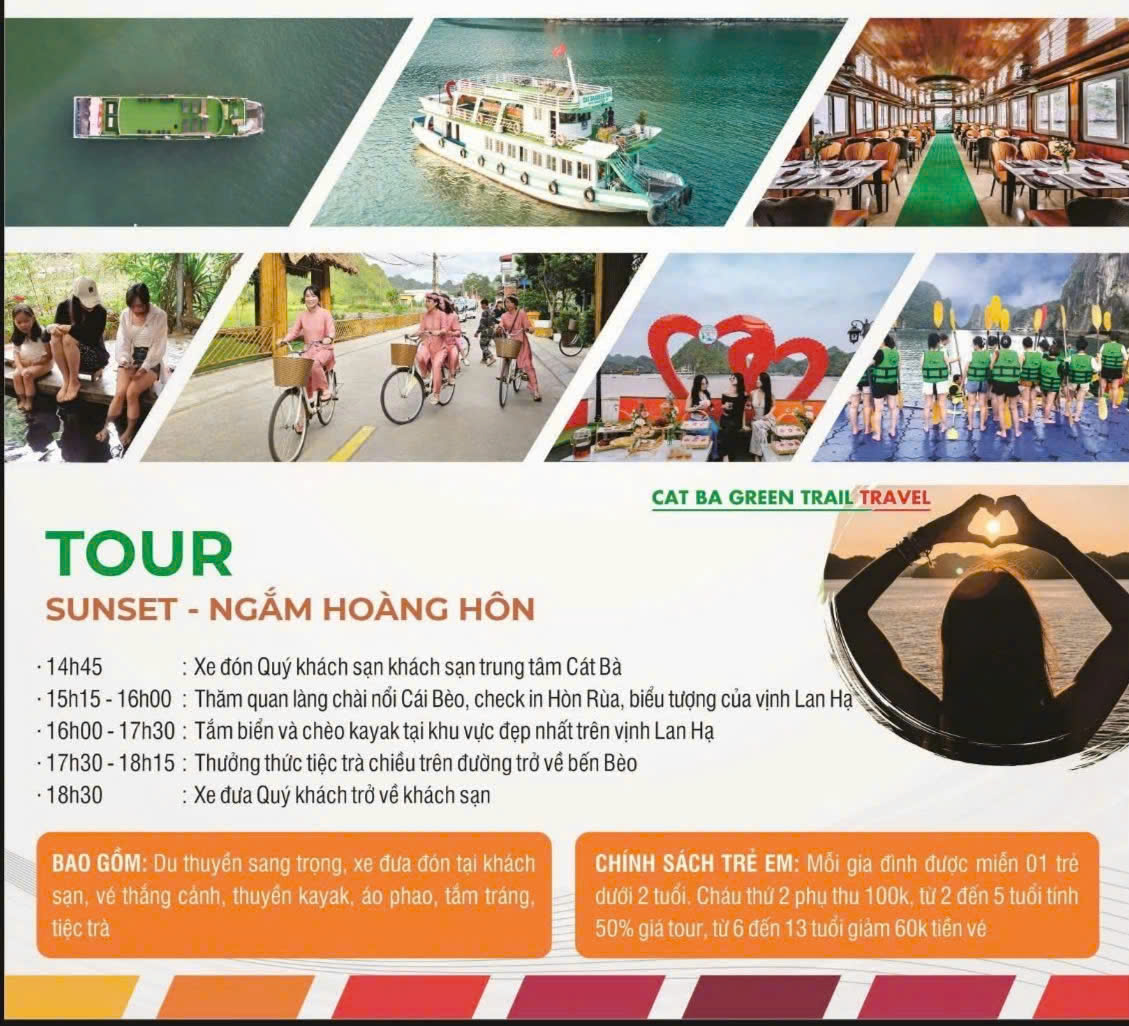 Tour ngắm hoàng hôn vịnh Lan Hạ, Tour tham quan vịnh Lan Hạ - Hang Cả một ngày và Tour tham quan vịnh Lan Hạ - Việt Hải một ngày được Cat Ba Green Trail Travel tổ chức tất cả các ngày trong tuần để phục vụ nhu cầu của du khách.