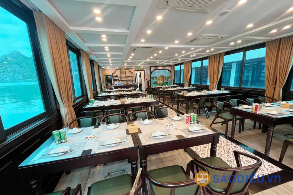 • Tầng 1 & 2: Không gian nhà hàng và bar sang trọng, rộng rãi, thiết kế theo phong cách hiện đại tinh tế. Tại đây, bạn vừa thưởng thức ẩm thực hấp dẫn, vừa ngắm trọn vẹn vẻ đẹp của vịnh mà không bị vướng tầm mắt. Hệ thống điều hòa mát lạnh giúp bạn luôn cảm thấy dễ chịu, thư giãn tuyệt đối.