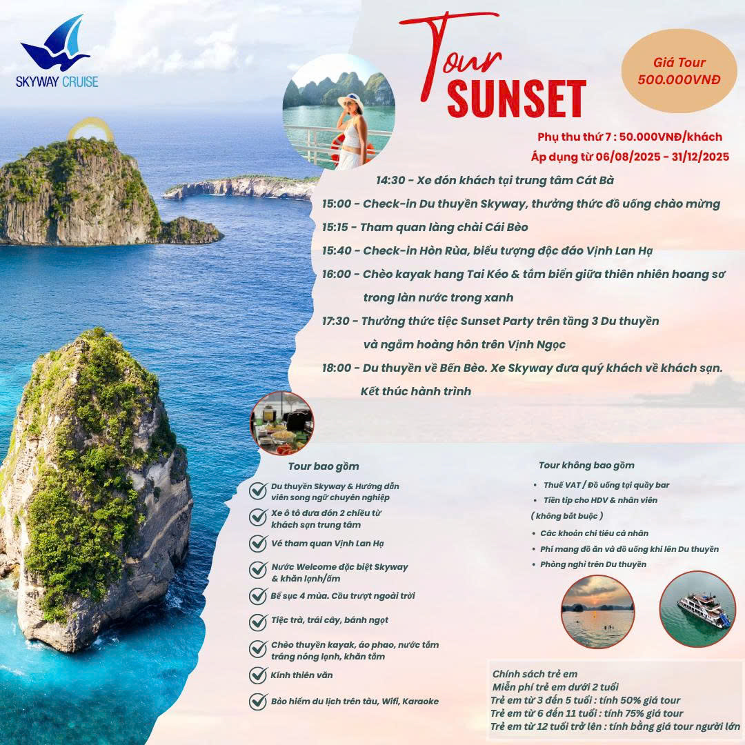 * Lưu ý: Mùa thấp điểm du thuyền không tố chức tour sunset và tour ăn tối.