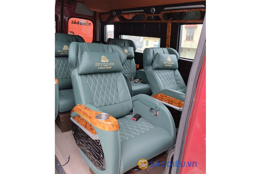 Xe Limousine Duy Quang đi Lạng Sơn sử dụng đồng bộ dòng xe Limousine Dcar 9 chỗ hạng thương gia cao cấp. Xe có thiết kế 9 ghế bọc da cao cấp với không gian rộng rãi, thoáng mát. 07 ghế hạng thương gia của xe có bệ tì tay, gối đỡ chân và tựa lưng điều khiển hoàn toàn bằng điện. Nội thất của xe được ốp gỗ với rèm kéo che nắng, hệ thống đèn LED giọt nước, đèn bầu trời sao kiểu Rolls Royce sang trọng.