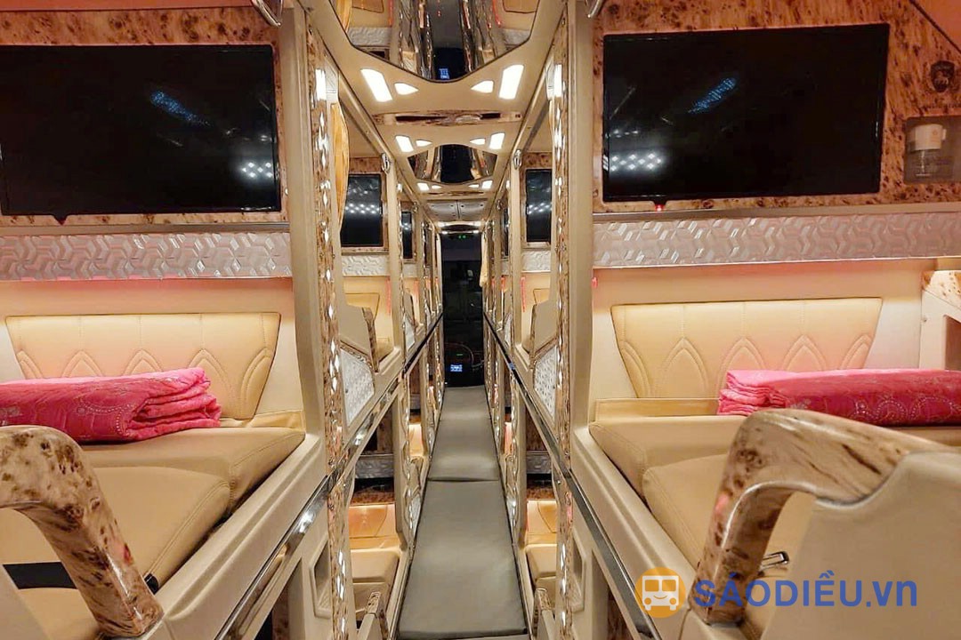 Mỗi cabin trên xe đều trang bị đầy đủ tiện nghi hiện đại: điều hoà, cổng sạc USB, wifi, khăn lạnh và nước uống miễn phí.