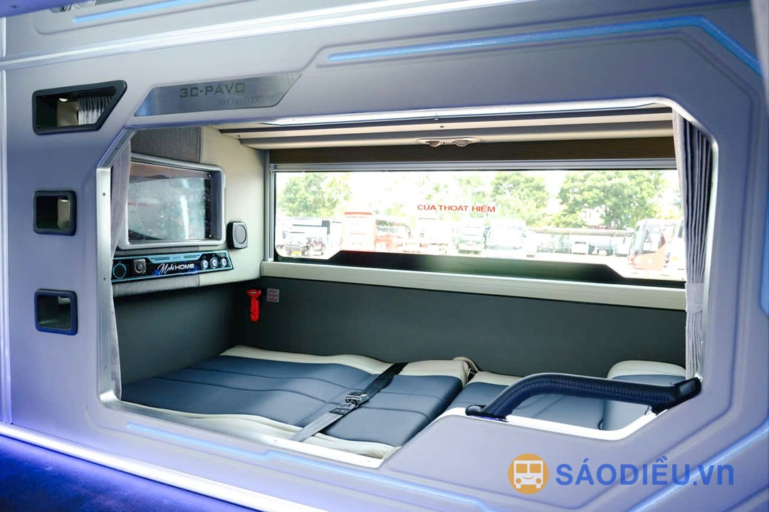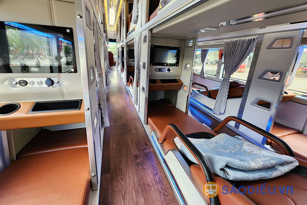 Mỗi Cabin đều trang bị đầy đủ tiện nghi hiện đại như: hệ thống giải trí HD với màn hình LCD, tai nghe, đèn đọc sách, cổng sạc USB, wifi, điều hoà, chăn đắp và nước uống miễn phí.