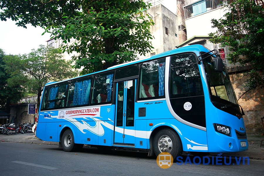 Xe GoodMorning Cát Bà đi Cát Bà là dòng xe Samco Felix 35 ghế. Các ghế được bọc da toàn bộ, êm ái, sạch sẽ. Trên xe trang bị đầy đủ các tiện nghi như: Điều hòa, LCD, Wifi, tủ lạnh mini, khăn lạnh, nước khoáng, đồ ăn nhẹ miễn phí và hướng dẫn viên song ngữ đi kèm.