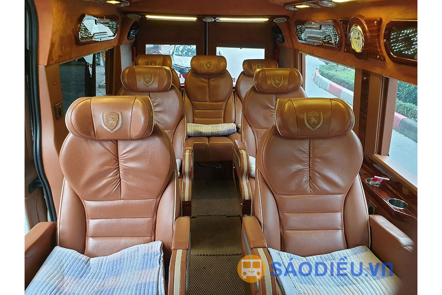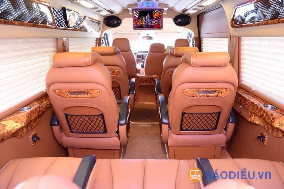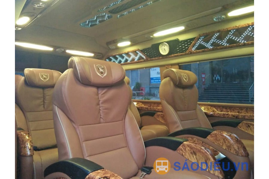 Xe Limousine Hùng Cường sử dụng dòng xe Limousine Dcar VIP 9/11 chỗ được thiết kế từ xe Transit và Solati 16 chỗ thông thường, cho không gian sử dụng rộng rãi, đảm bảo sự thư giãn, thoải mái tối đa. Xe có 9/11 ghế bọc da cao cấp với 2 ghế đầu xe và 7/9 ghế hạng thương gia ở khoang sau. Nội thất xe được ốp gỗ, trần xe với hệ thống đèn LED giọt nước, đèn bầu trời sao kiểu Rolls Royce góp phần mang lại sự thư giãn tối đa cho hành khách..