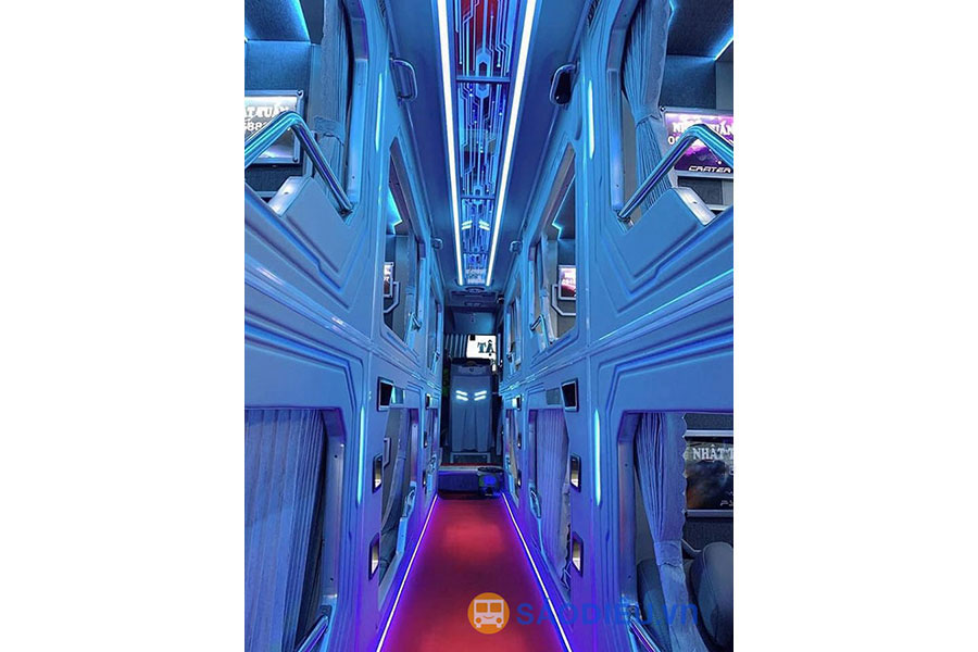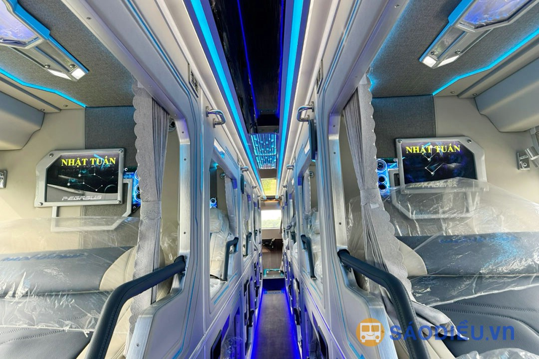 Xe Nhật Tuấn đi Huế có 02 loại xe là xe giường Cabin đơn 21 phòng và xe giường Cabin đôi 22 phòng, cả 02 loại đều có nhà vệ sinh khép kín trên xe. Giường của xe 21 Cabin đơn có chiều rộng khoảng 70cm. Giường của xe 22 Cabin đôi có chiều rộng khoảng 90cm.