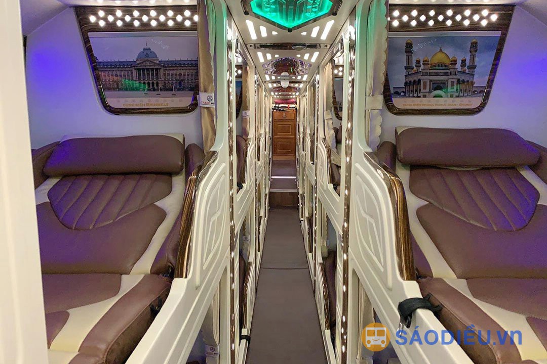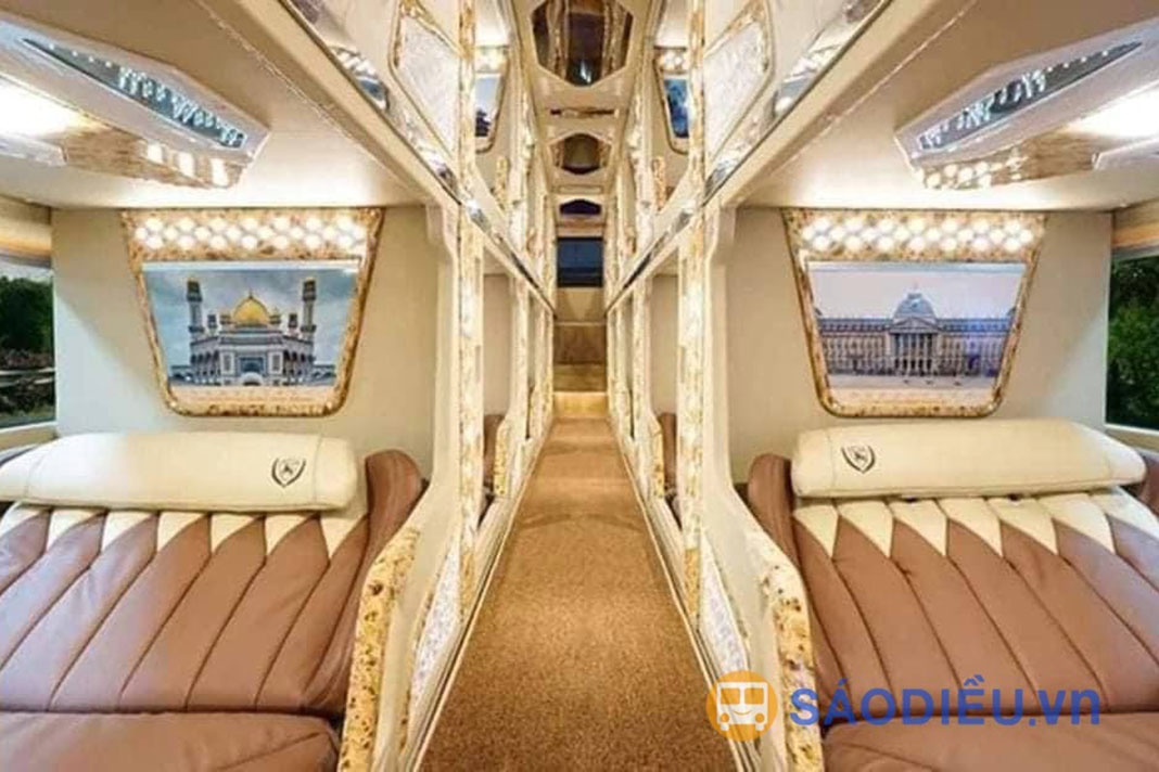 Xe Quang Tuyến đi Hà Nội - Hà Giang là loại xe giường Cabin Cung Điện Di Động 22 phòng. Mỗi cabin được thiết kế theo kiến trúc, hoa văn như một phòng cung điện sang trọng với cửa sổ kính view rộng toàn cảnh, có rèm và vách ngăn ngăn cách giữa các cabin, tạo cảm giác vừa thoải mái, vừa riêng tư cho hành khách. Giường của các Cabin có kích thước siêu rộng, được bọc da toàn bộ và có thể điều chỉnh nghiêng hoặc ngả phẳng hoàn toàn.