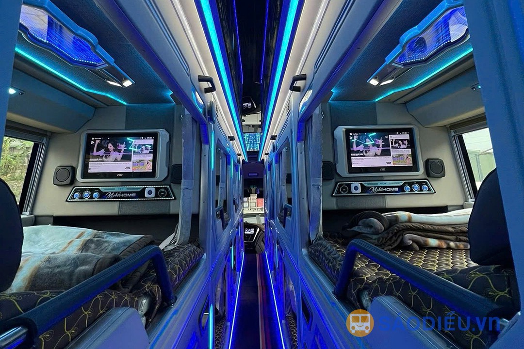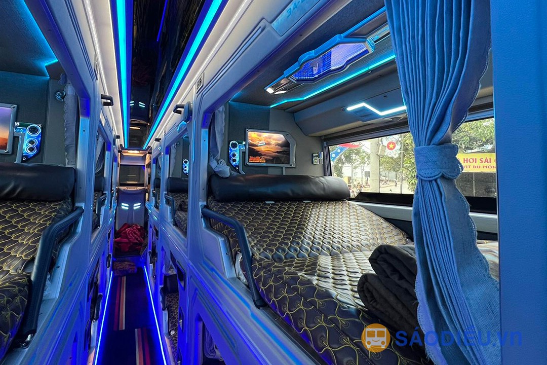 Xe giường nằm Thành Mỹ là loại xe giường nằm 34/40 giường bọc da toàn bộ, khá rộng rãi, sạch sẽ. Trên xe có đầy đủ tiện nghi cần thiết như: Điều hòa, wifi, chăn đắp, nước uống và khăn lạnh miễn phí.