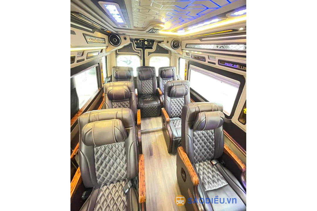 Xe Limousine VIP Thành Mỹ là xe Limousine 9 ghế được thiết kế từ xe 16 chỗ thông thường nên rất rộng rãi, thoải mái. Các ghế được bọc da toàn bộ, có thể điều chỉnh ngả lưng theo ý muốn, giúp cho hành khách luôn thoải mái trên suốt hành trình.