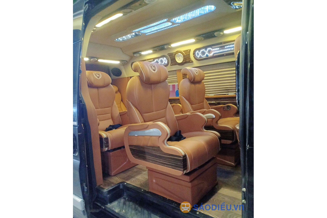 Xe Limousine Tiến Minh Luxury là loại xe Limousine VIP 9 ghế đời mới được nâng cấp từ xe 16 chỗ thông thường nên rất rộng rãi, thoải mái. Các ghế ngồi được bọc da cao cấp, có thể điều chỉnh ngả lưng từ 0 tới 45 độ. Nội thất của xe được ốp gỗ sang trọng, trần xe trang bị hệ thống đèn led bầu trời sao, tạo sự thư giãn tối đa cho hành khách.